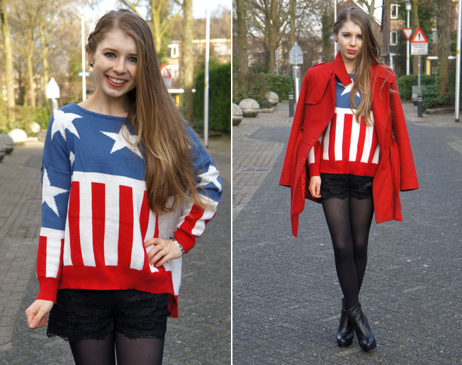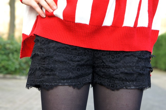 sweater attracts me that much. I wore it in combination with my DIY clutch and black lace shorts (the nonchalant side of the look) and my red coat (the elegant side of the look) yesterday. Though it's storming right now, the sun shone yesterday and while driving along the airport I suddenly got tremendous sense in summer. I've got a feeling it will be the best summer EVER!